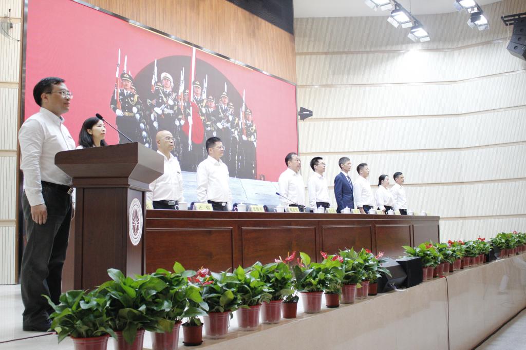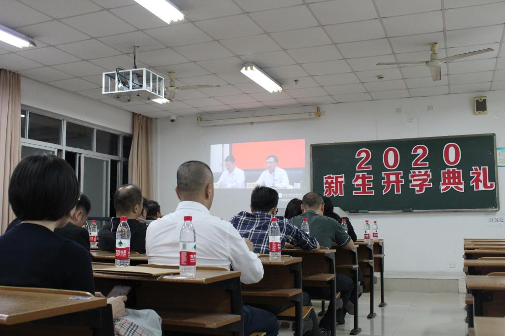 庄严雄伟的国歌声响起,全体师生整齐肃立,奏唱国歌,2020级新生开学典礼拉开帷幕。